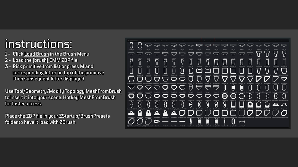 Place the AKRing_LoopPrimitives_01_v1.0_Z2022.ZBP file in your ZStartup/BrushPresets folder to have it load with ZBrush